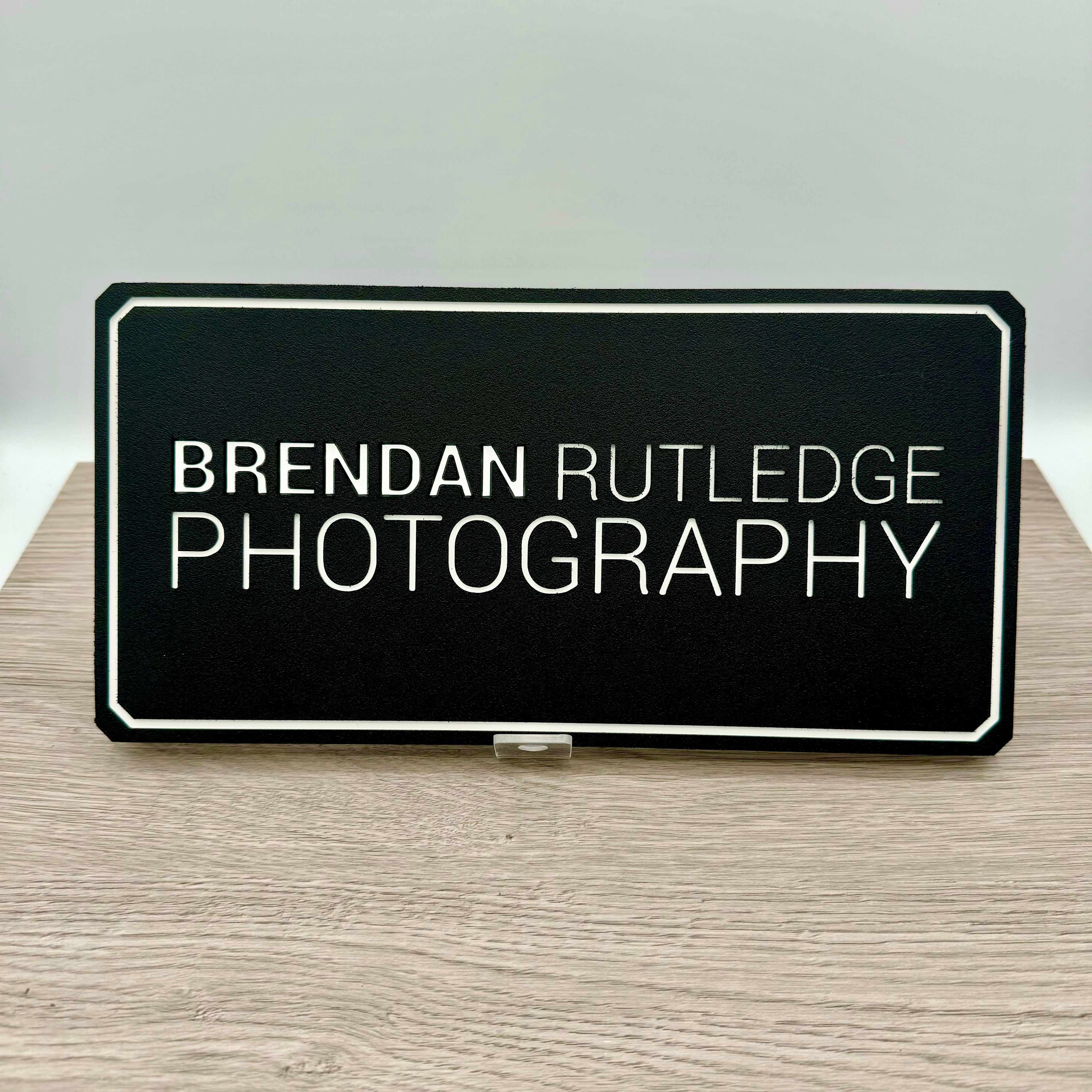 Brendan Rutledge Photography - 6 x12" signs for indoor gallery and outdoor booth spaces. Carved on a CNC Router using 1/2" HDPE Color Core (Black over White) material.