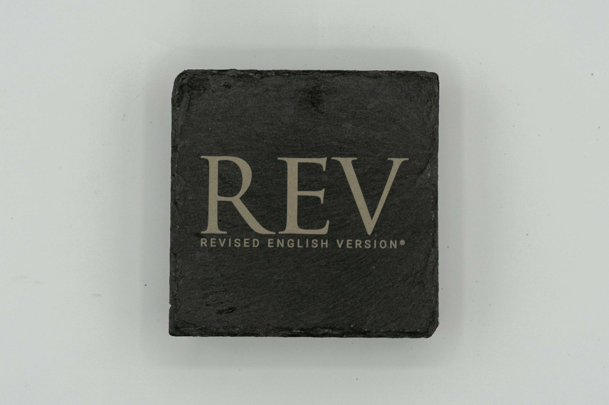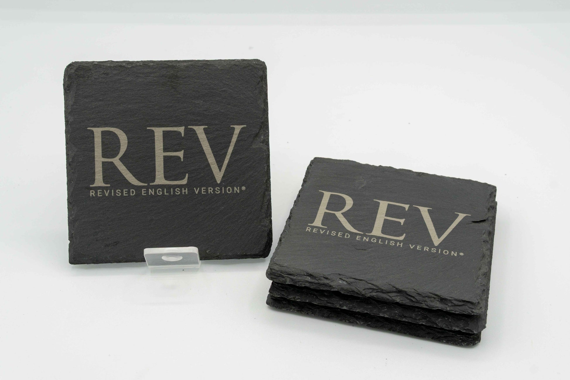 Revised English Version (REV) Logo | Slate Coasters (Set of 4) | Square